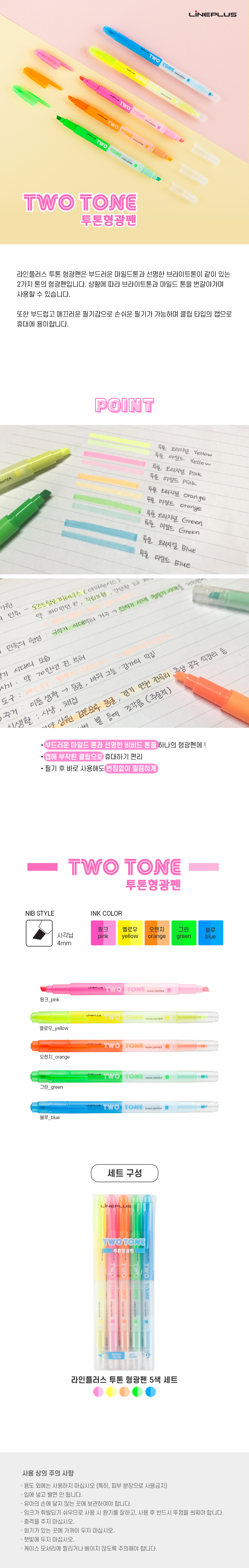 투톤형광펜/5색