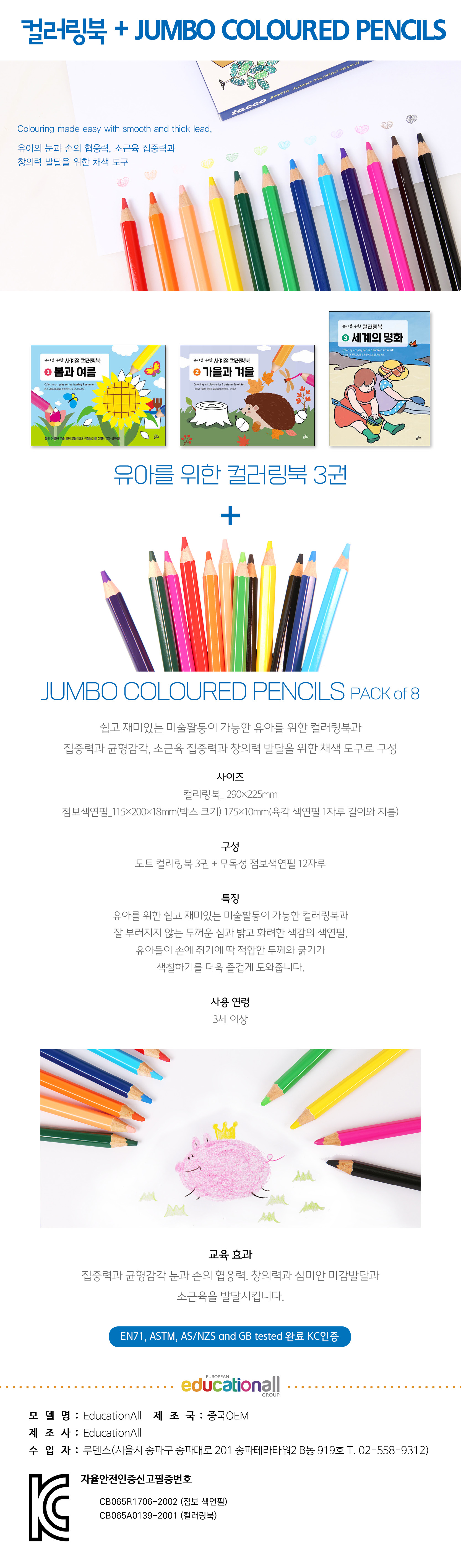컬러링북3권+점보색연필/12색세트
